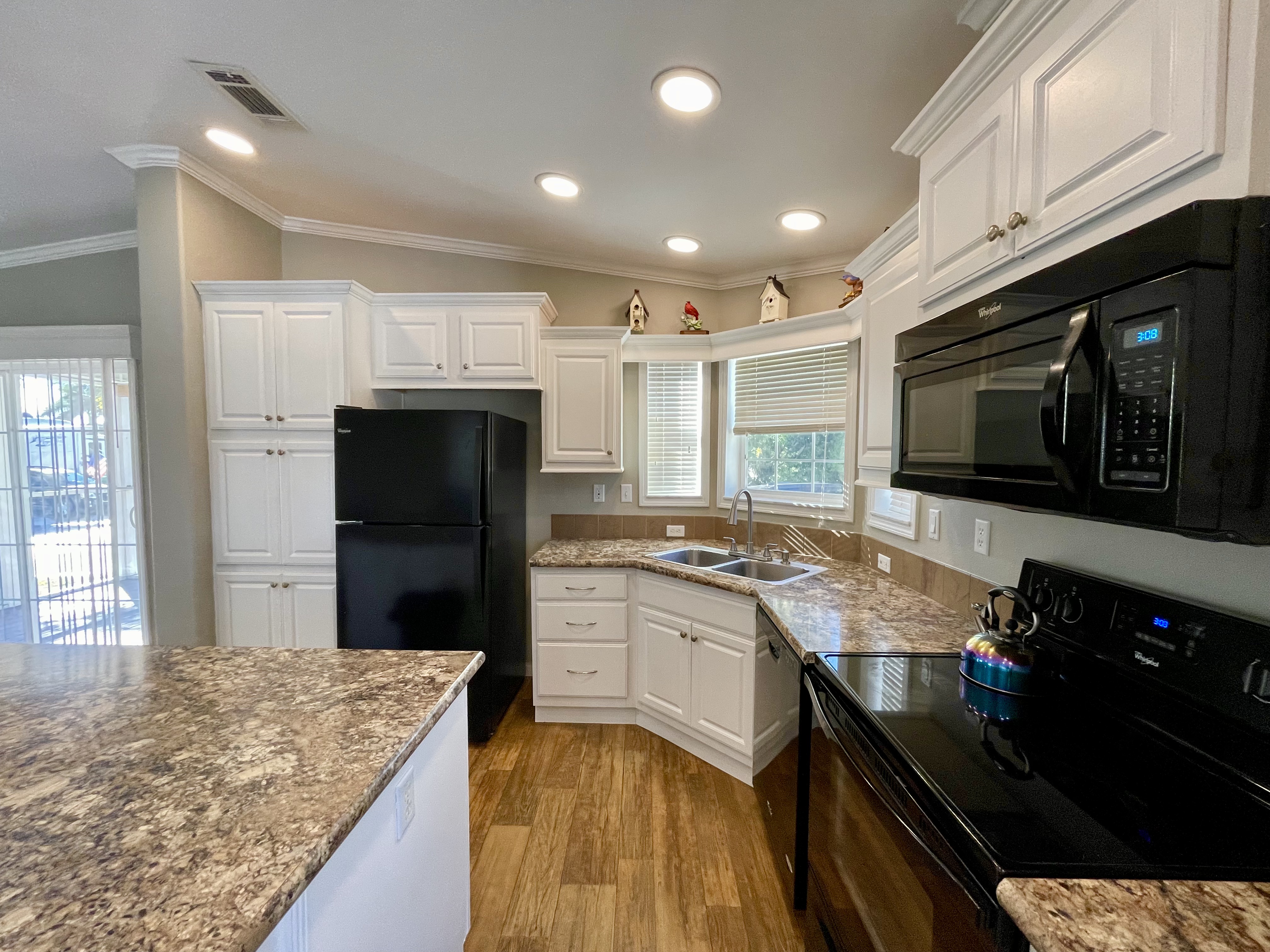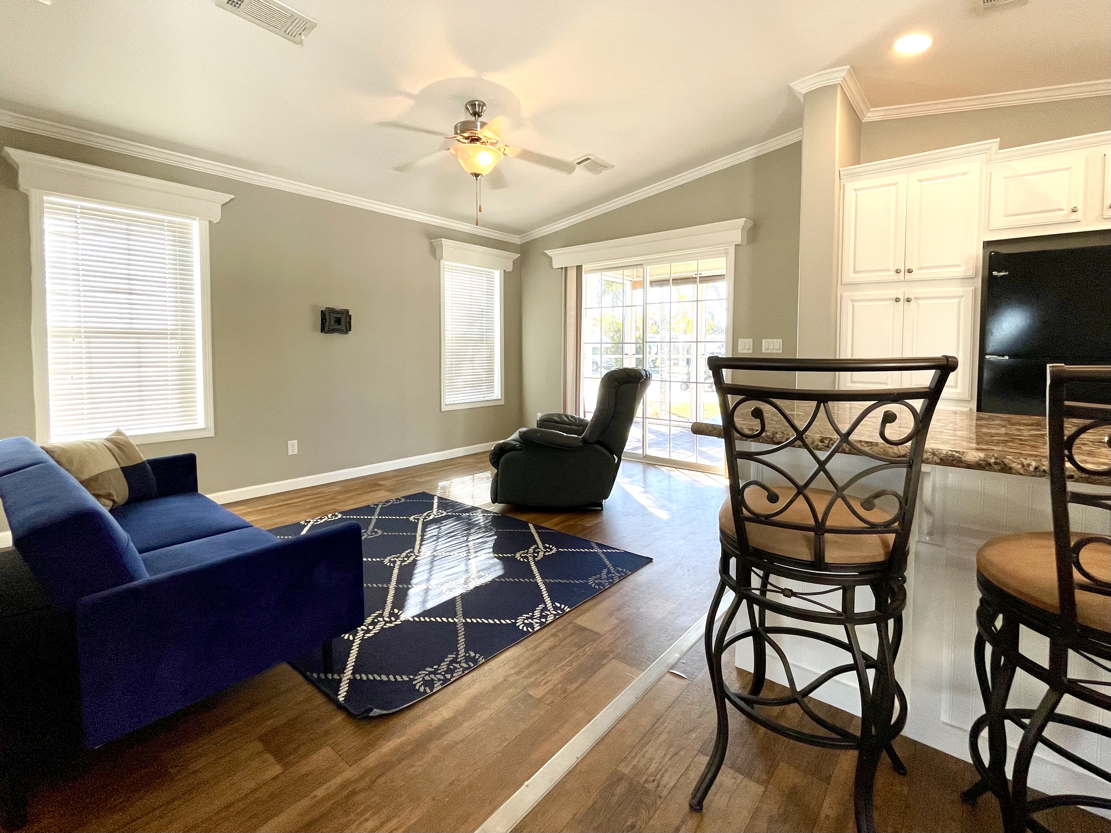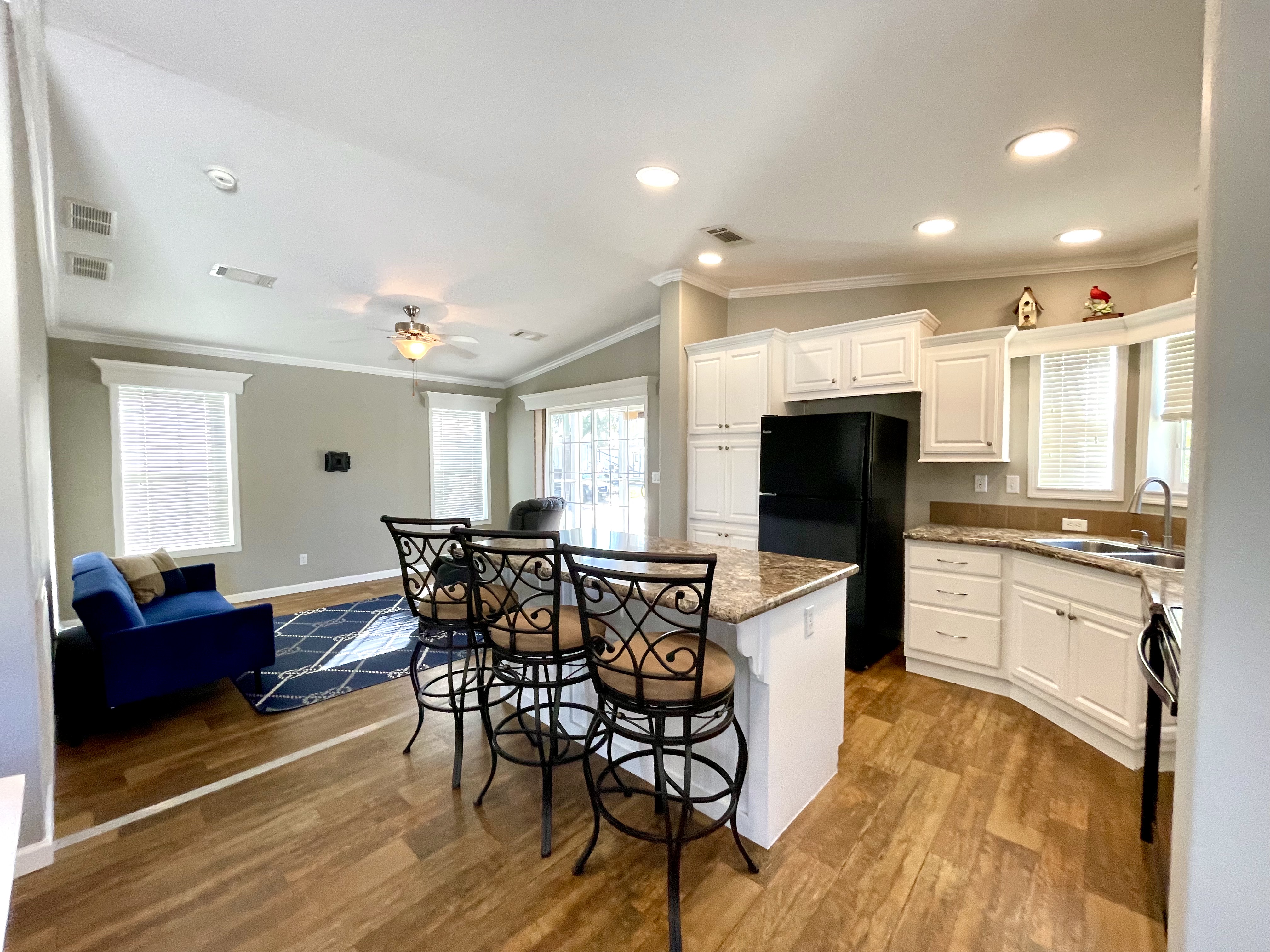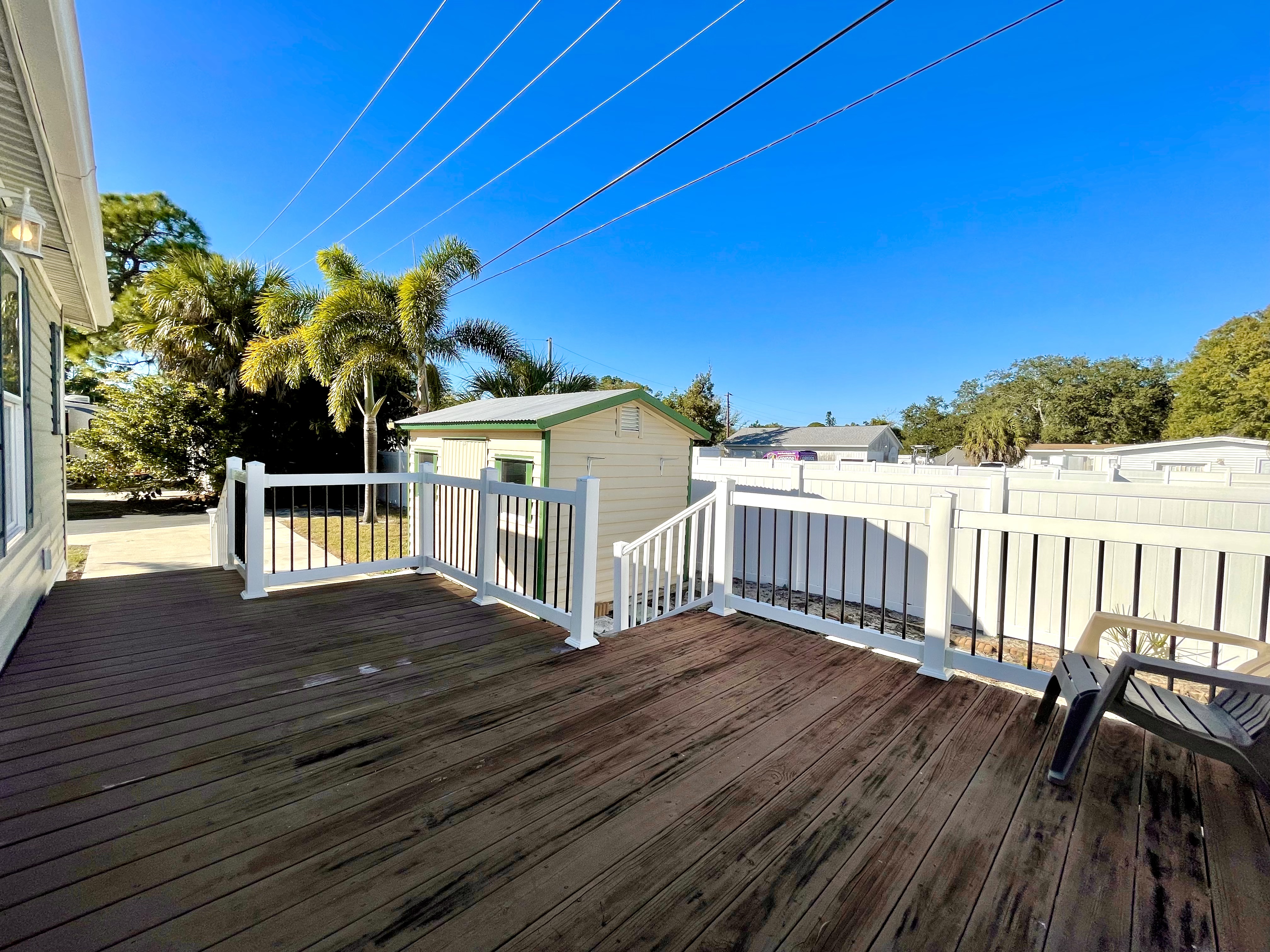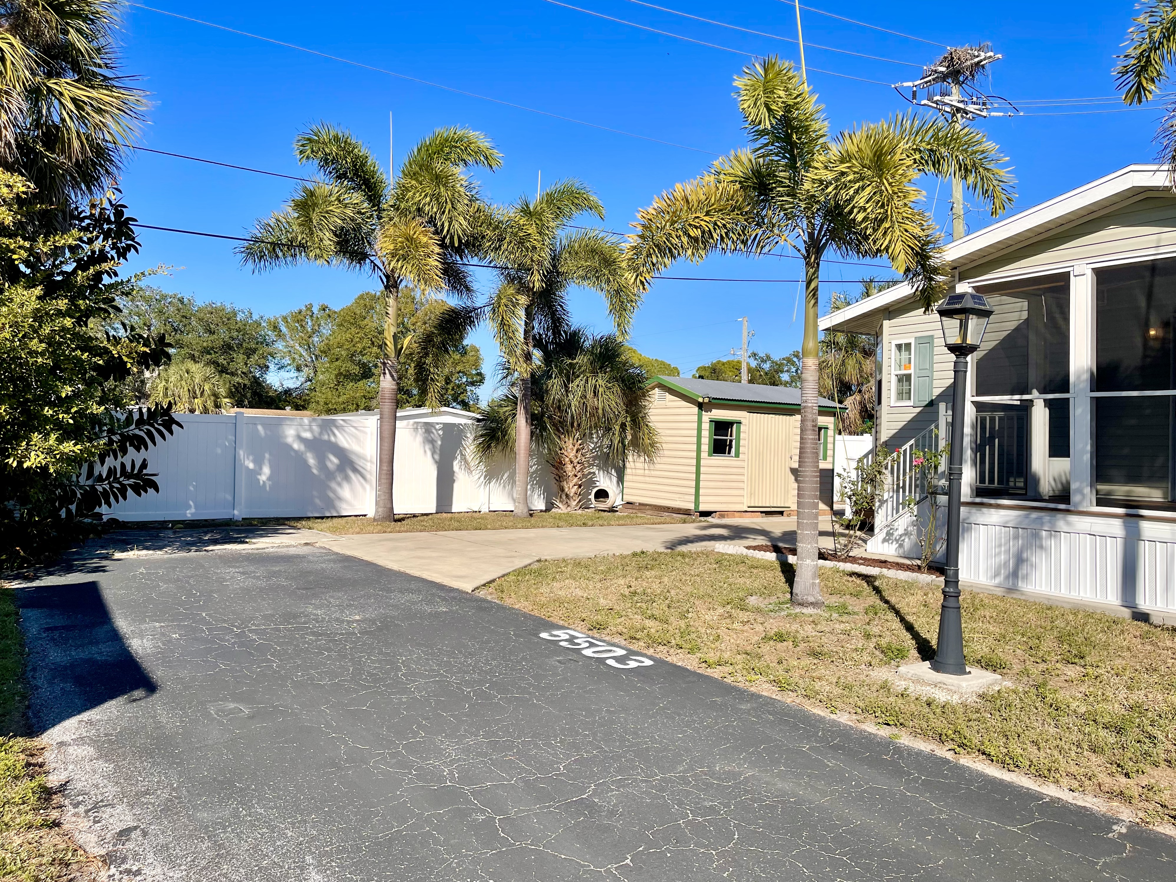 Like-New 2015 Home on Rare Double Corner Lot | Resort-Style Living Near Gulf Beaches Welcome to your private Gulf Coast retreat! This like-new 2015 2BD/2BA 1080 SqFt home is located in a highly desirable all-ages, resort-style community in Bradenton, Florida, just minutes from world-famous Gulf beaches, shopping, dining, and entertainment. Situated on a rare double corner perimeter lot, this home offers exceptional privacy, multiple-car parking, and expansive outdoor living space featuring paver patios, mature palm trees, and lush landscaping. Outdoor living shines with decking on both the front porch (Trex) and side deck, plus an extra storage shed for added convenience. Enjoy morning coffee or sunset cocktails from the screened-in front porch with Gulf Coast Sunset Sky views, complete with a roll-down privacy blind. Inside, the bright open-concept floor plan is highlighted by cathedral vaulted ceilings, luxury vinyl plank flooring throughout, and upscale finishes including sheetrock walls, crown molding, paneled doors, and custom window cornice details. The stylish kitchen boasts white cabinetry, a double-basin sink, abundant storage, and a large island with barstool seating, perfect for entertaining or everyday living. Sliding French doors seamlessly connect the indoor space to the screened porch for effortless Florida indoor-outdoor living. The split-bedroom layout provides comfort and privacy, featuring a guest bathroom with a shower/tub combo and a spacious primary suite with a step-in shower, privacy wall, and pocket door. Additional highlights include a 2024 Centra A/C Unit, Shingled Roof, extra storage shed, and low-maintenance landscaping. This pet-friendly, ALL AGE Community offers true resort-style amenities, including a clubhouse, heated pool, fitness center, pickleball courts, game room, shuffleboard, horseshoes, pavilion, picnic areas, pet walk, and doggie station. Move-in ready, private, and impeccably maintained-this home is ideal as a full-time residence, vacation getaway, or seasonal retreat. Experience the best of Florida Gulf Coast living in one of Bradenton’s most sought-after resort communities. Lot rent for this home is just $824 per month and includes trash/recycling pickup, lawn-care, and amenities! Don’t wait, call today! All listing information is deemed reliable but not guaranteed and should be independently verified through personal inspection by appropriate professionals. Integrity Mobile Home Sales cannot guarantee or warrant the accuracy of this information, measurements, or property condition. Measurements are approximate. Lot rent is subject to change.