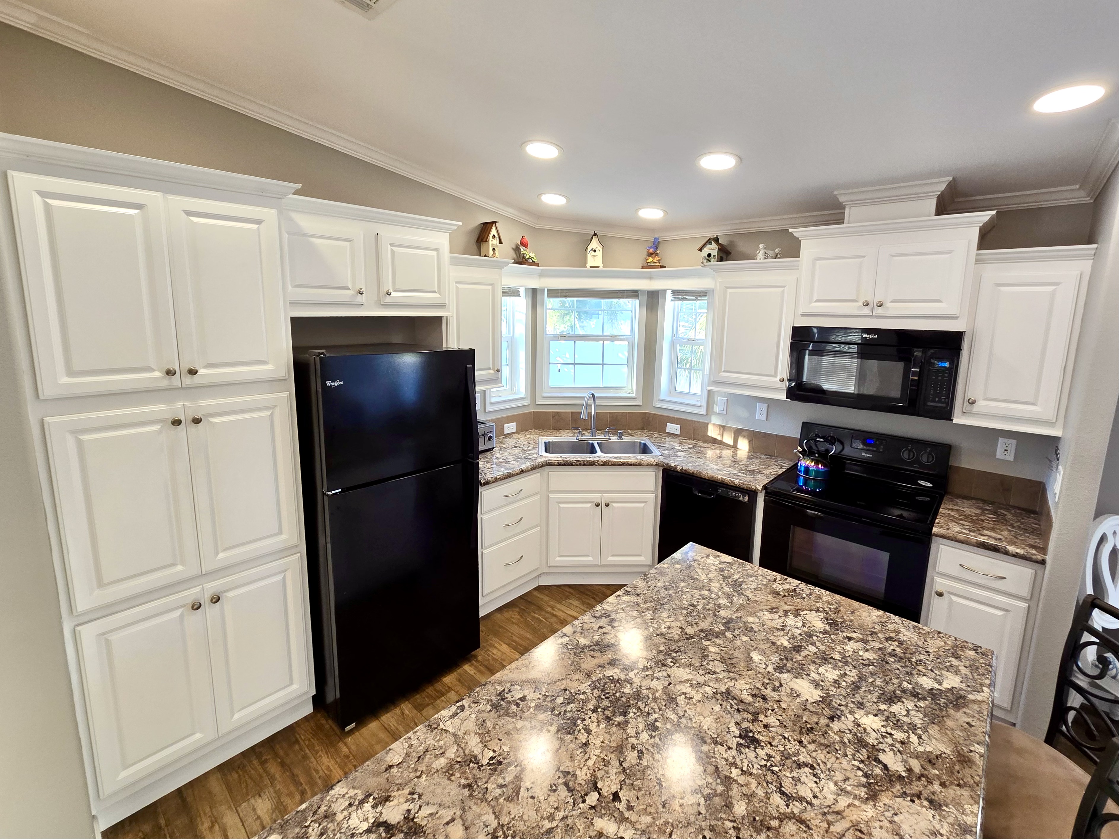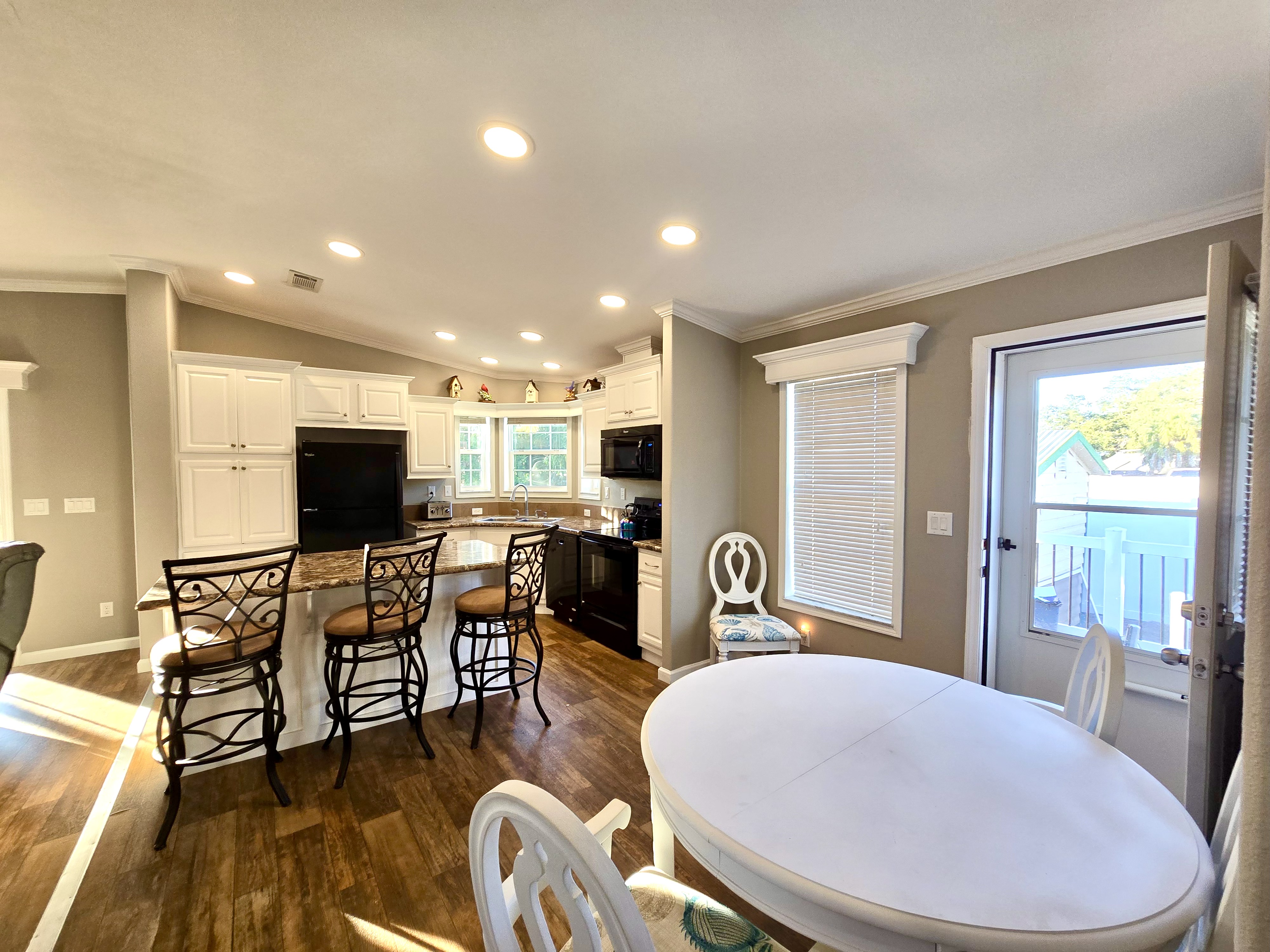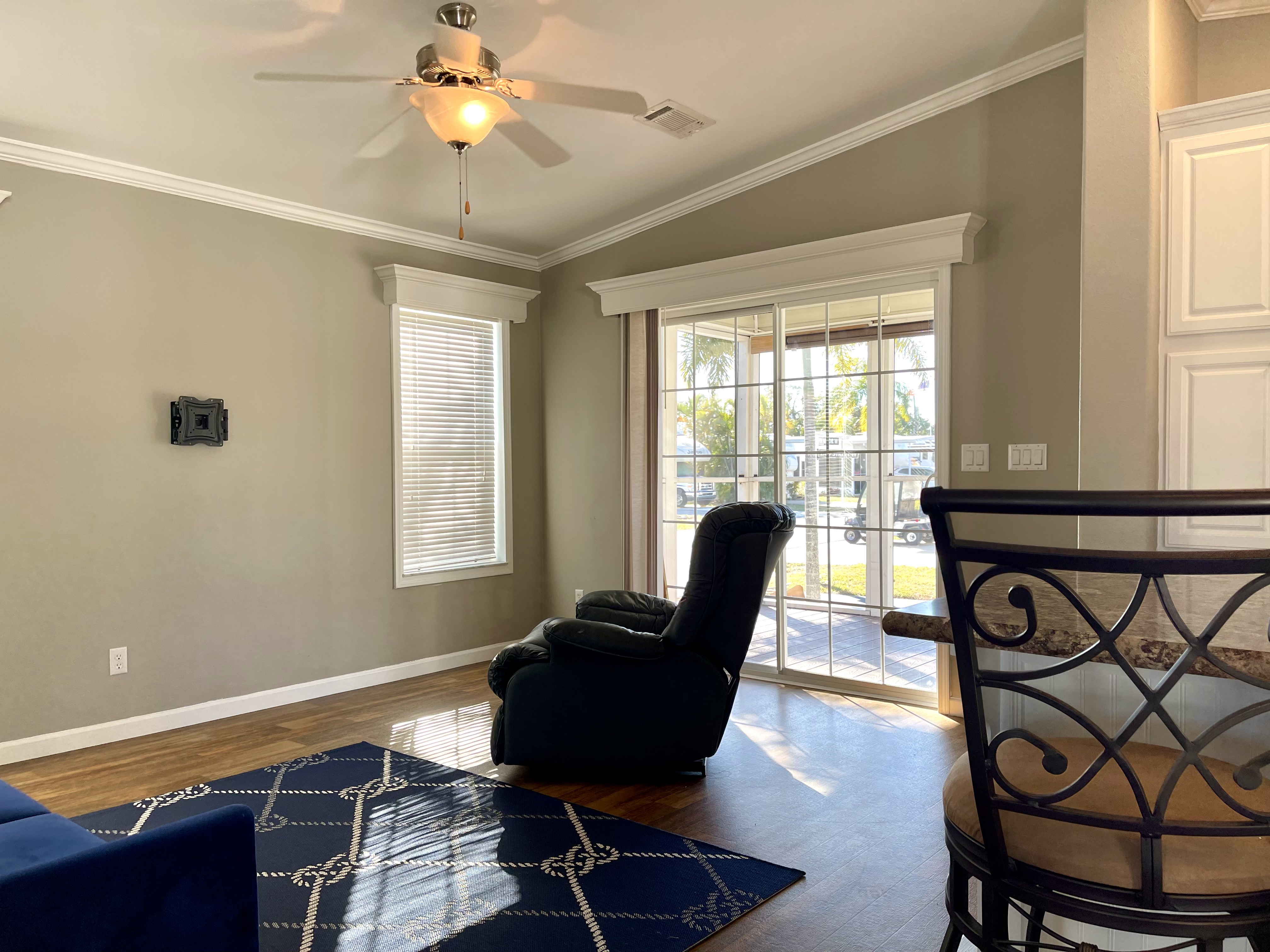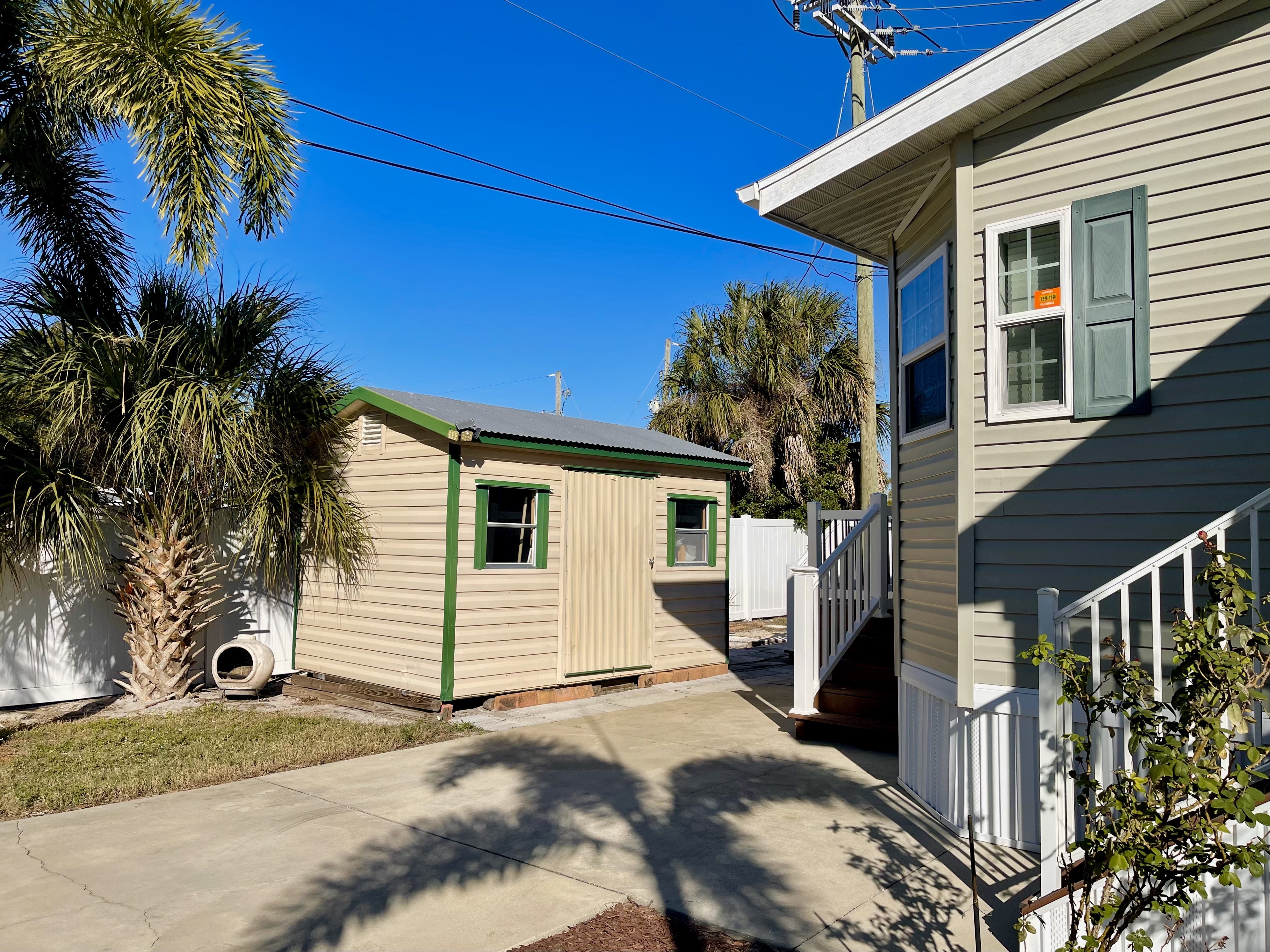 Like-New 2015 Home on Rare Double Corner Lot | Resort-Style Living Near Gulf Beaches Welcome to your private Gulf Coast retreat! This like-new 2015 2BD/2BA 1080 SqFt home is located in a highly desirable all-ages, resort-style community in Bradenton, Florida, just minutes from world-famous Gulf beaches, shopping, dining, and entertainment. Situated on a rare double corner perimeter lot, this home offers exceptional privacy, multiple-car parking, and expansive outdoor living space featuring paver patios, mature palm trees, and lush landscaping. Outdoor living shines with decking on both the front porch (Trex) and side deck, plus an extra storage shed for added convenience. Enjoy morning coffee or sunset cocktails from the screened-in front porch with Gulf Coast Sunset Sky views, complete with a roll-down privacy blind. Inside, the bright open-concept floor plan is highlighted by cathedral vaulted ceilings, luxury vinyl plank flooring throughout, and upscale finishes including sheetrock walls, crown molding, paneled doors, and custom window cornice details. The stylish kitchen boasts white cabinetry, a double-basin sink, abundant storage, and a large island with barstool seating, perfect for entertaining or everyday living. Sliding French doors seamlessly connect the indoor space to the screened porch for effortless Florida indoor-outdoor living. The split-bedroom layout provides comfort and privacy, featuring a guest bathroom with a shower/tub combo and a spacious primary suite with a step-in shower, privacy wall, and pocket door. Additional highlights include a 2024 Centra A/C Unit, Shingled Roof, extra storage shed, and low-maintenance landscaping. This pet-friendly, ALL AGE Community offers true resort-style amenities, including a clubhouse, heated pool, fitness center, pickleball courts, game room, shuffleboard, horseshoes, pavilion, picnic areas, pet walk, and doggie station. Move-in ready, private, and impeccably maintained-this home is ideal as a full-time residence, vacation getaway, or seasonal retreat. Experience the best of Florida Gulf Coast living in one of Bradenton’s most sought-after resort communities. Lot rent for this home is just $824 per month and includes trash/recycling pickup, lawn-care, and amenities! Don’t wait, call today! All listing information is deemed reliable but not guaranteed and should be independently verified through personal inspection by appropriate professionals. Integrity Mobile Home Sales cannot guarantee or warrant the accuracy of this information, measurements, or property condition. Measurements are approximate. Lot rent is subject to change.