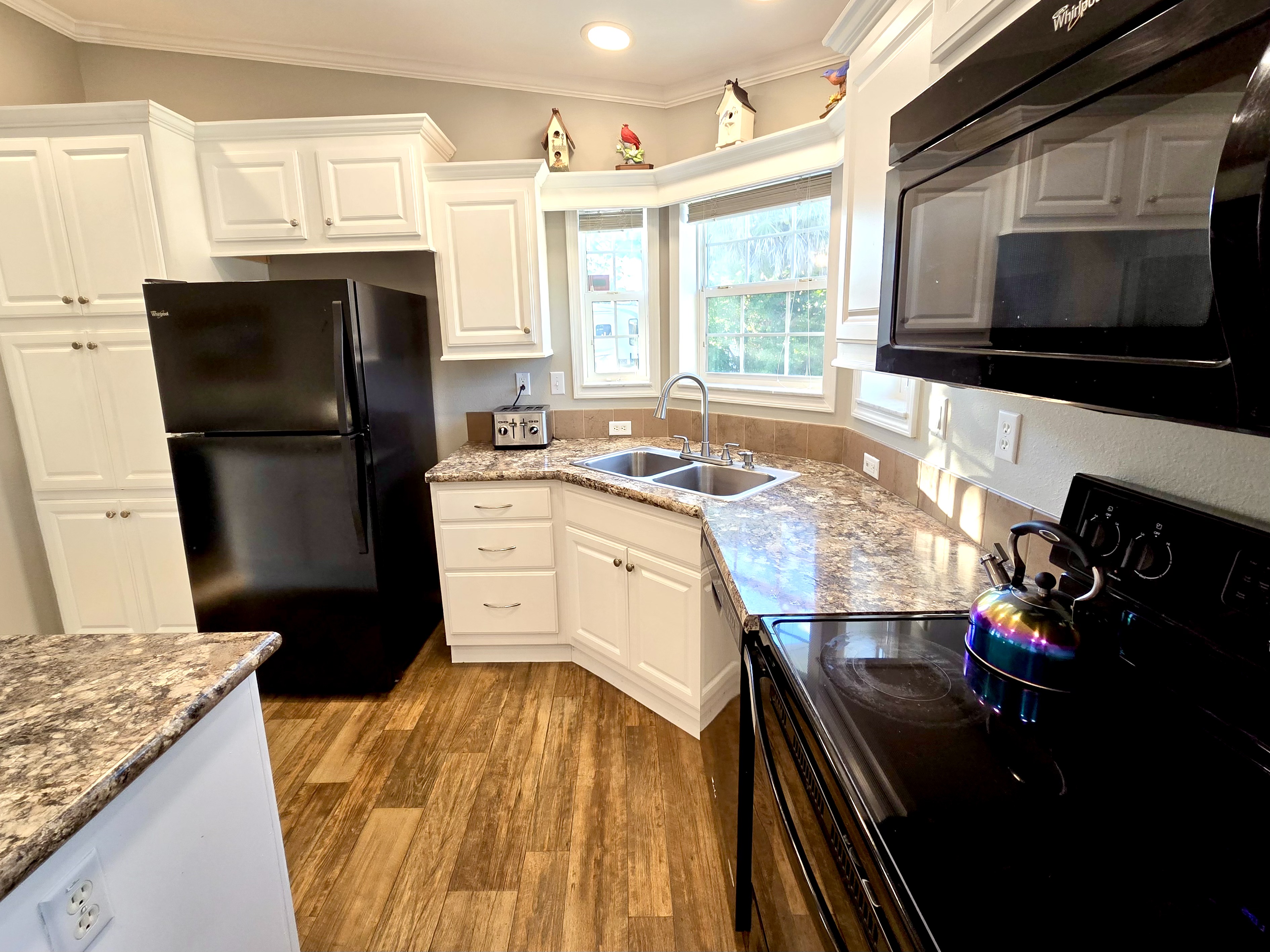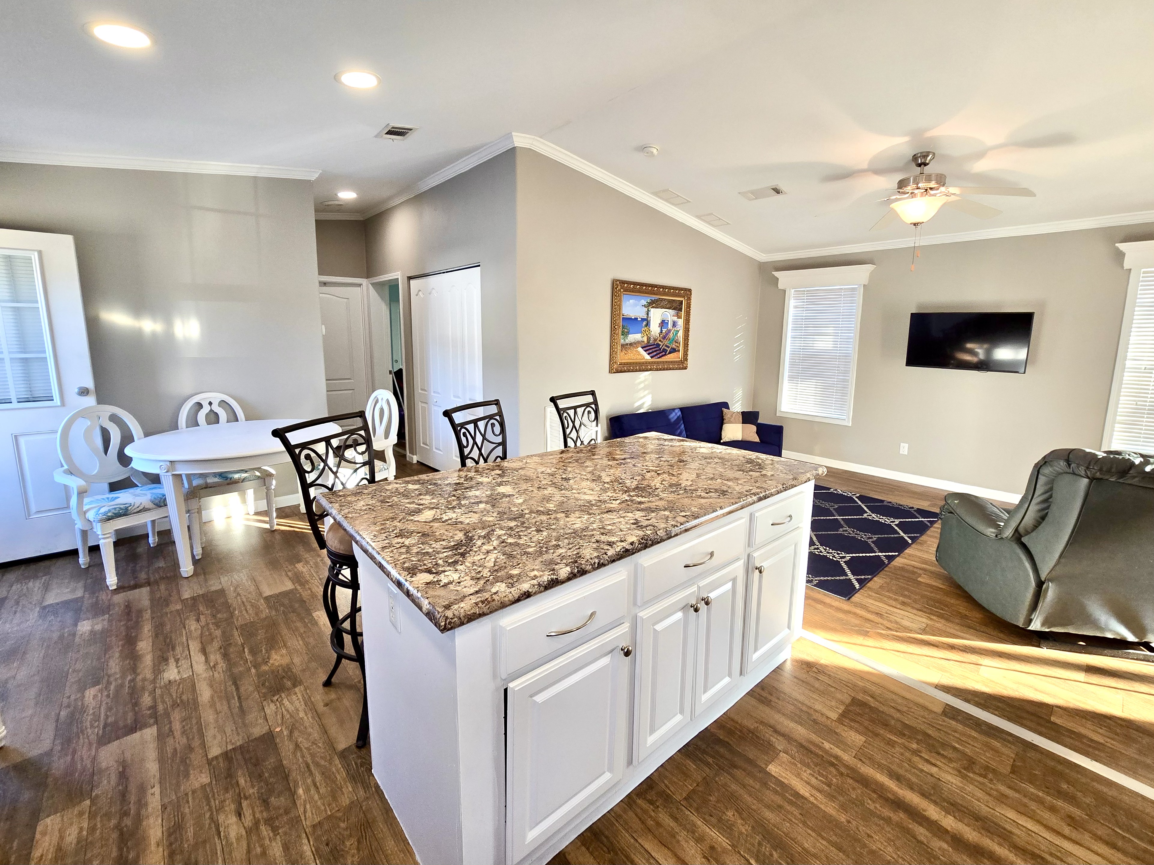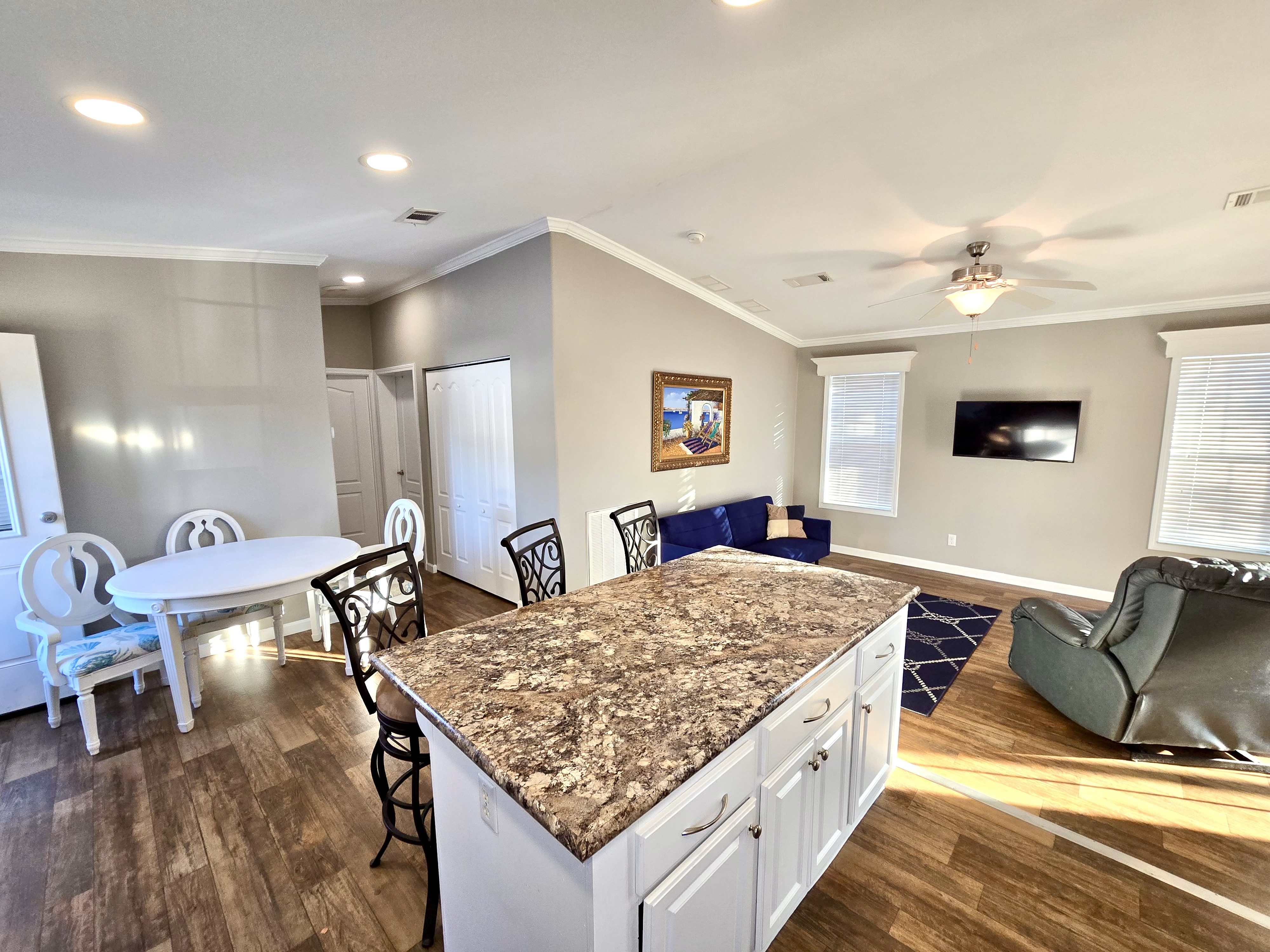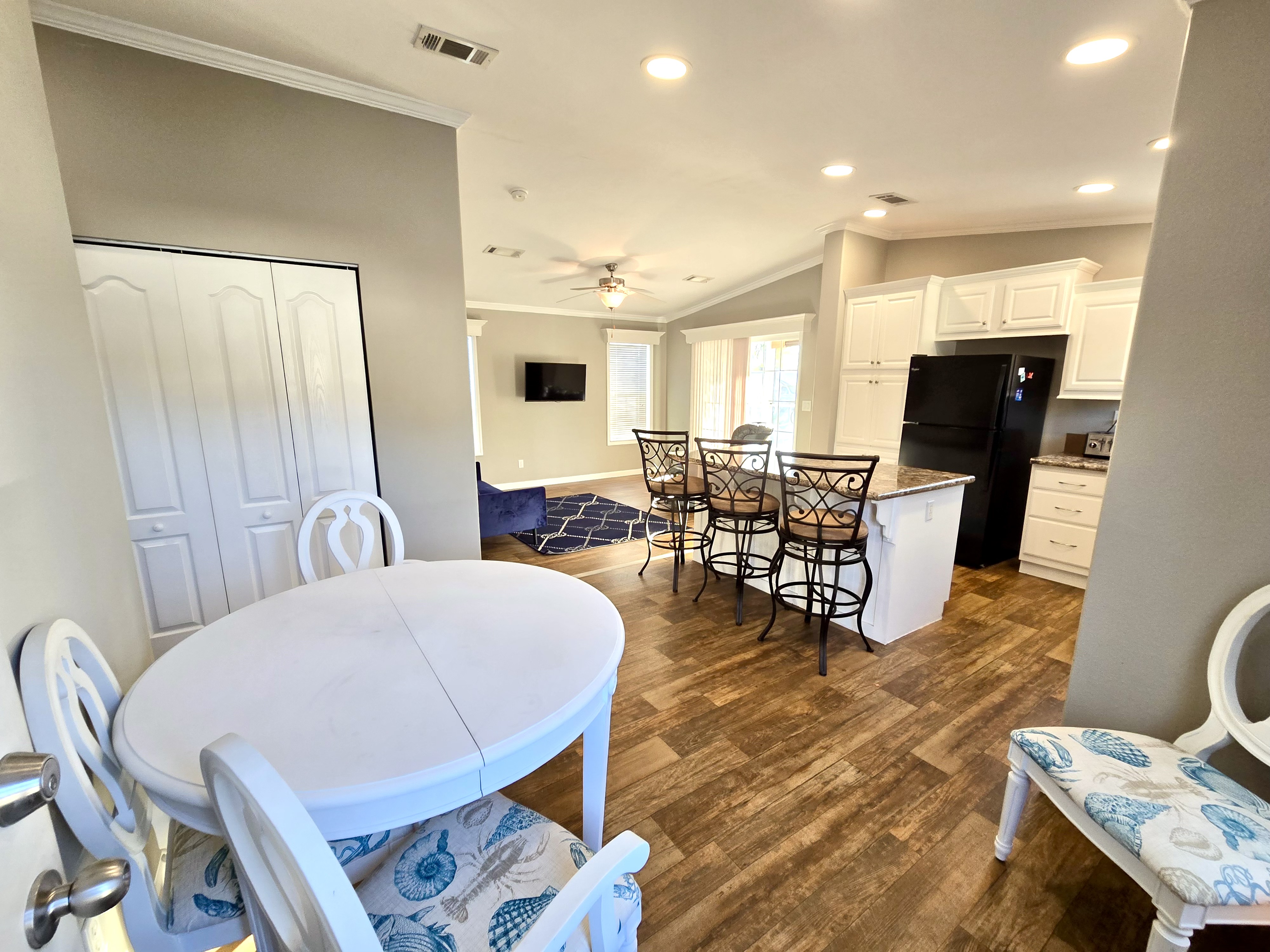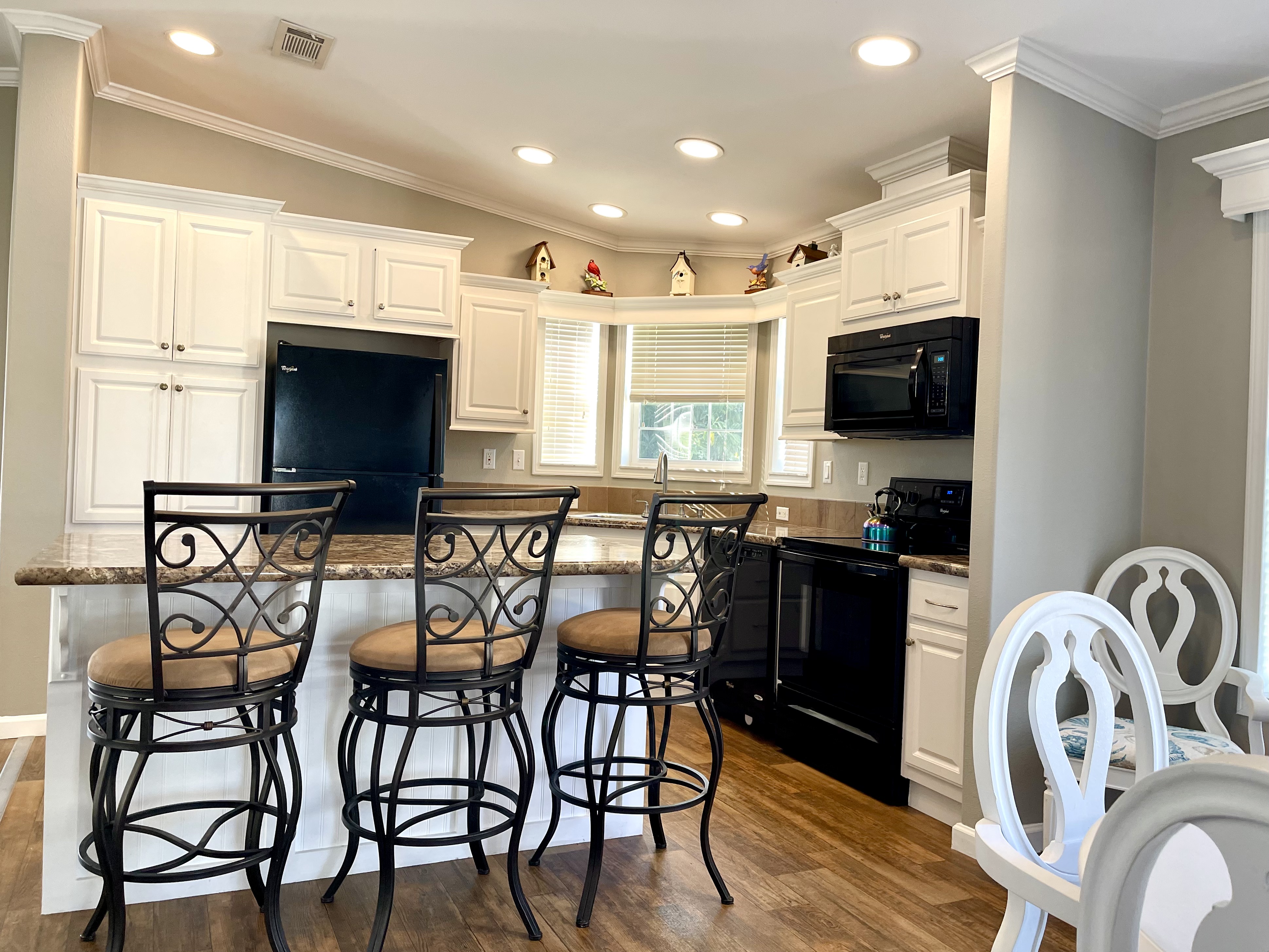 Like-New 2015 Home on Rare Double Corner Lot | Resort-Style Living Near Gulf Beaches Welcome to your private Gulf Coast retreat! This like-new 2015 2BD/2BA 1080 SqFt home is located in a highly desirable all-ages, resort-style community in Bradenton, Florida, just minutes from world-famous Gulf beaches, shopping, dining, and entertainment. Situated on a rare double corner perimeter lot, this home offers exceptional privacy, multiple-car parking, and expansive outdoor living space featuring paver patios, mature palm trees, and lush landscaping. Outdoor living shines with decking on both the front porch (Trex) and side deck, plus an extra storage shed for added convenience. Enjoy morning coffee or sunset cocktails from the screened-in front porch with Gulf Coast Sunset Sky views, complete with a roll-down privacy blind. Inside, the bright open-concept floor plan is highlighted by cathedral vaulted ceilings, luxury vinyl plank flooring throughout, and upscale finishes including sheetrock walls, crown molding, paneled doors, and custom window cornice details. The stylish kitchen boasts white cabinetry, a double-basin sink, abundant storage, and a large island with barstool seating, perfect for entertaining or everyday living. Sliding French doors seamlessly connect the indoor space to the screened porch for effortless Florida indoor-outdoor living. The split-bedroom layout provides comfort and privacy, featuring a guest bathroom with a shower/tub combo and a spacious primary suite with a step-in shower, privacy wall, and pocket door. Additional highlights include a 2024 Centra A/C Unit, Shingled Roof, extra storage shed, and low-maintenance landscaping. This pet-friendly, ALL AGE Community offers true resort-style amenities, including a clubhouse, heated pool, fitness center, pickleball courts, game room, shuffleboard, horseshoes, pavilion, picnic areas, pet walk, and doggie station. Move-in ready, private, and impeccably maintained-this home is ideal as a full-time residence, vacation getaway, or seasonal retreat. Experience the best of Florida Gulf Coast living in one of Bradenton’s most sought-after resort communities. Lot rent for this home is just $824 per month and includes trash/recycling pickup, lawn-care, and amenities! Don’t wait, call today! All listing information is deemed reliable but not guaranteed and should be independently verified through personal inspection by appropriate professionals. Integrity Mobile Home Sales cannot guarantee or warrant the accuracy of this information, measurements, or property condition. Measurements are approximate. Lot rent is subject to change.