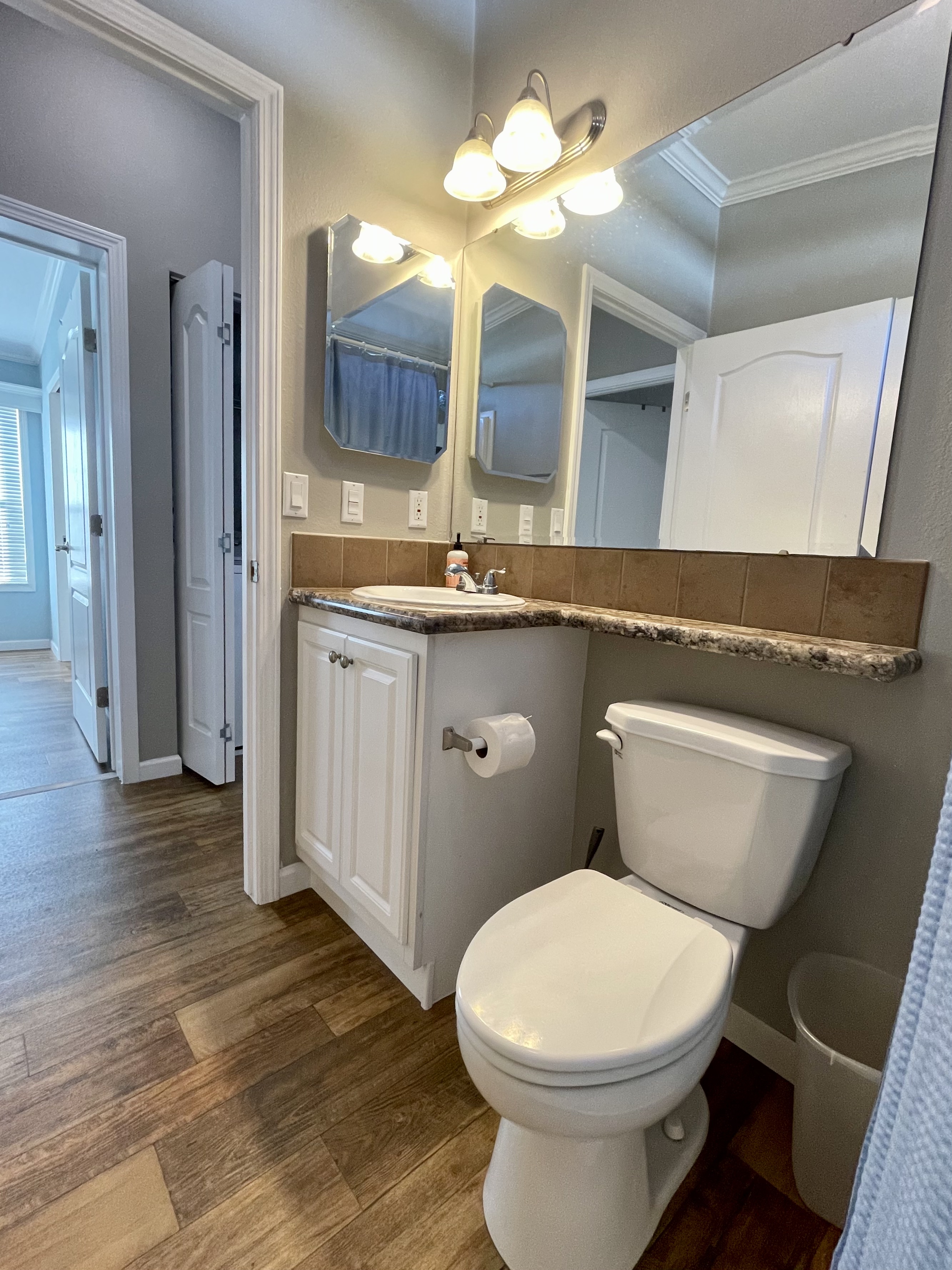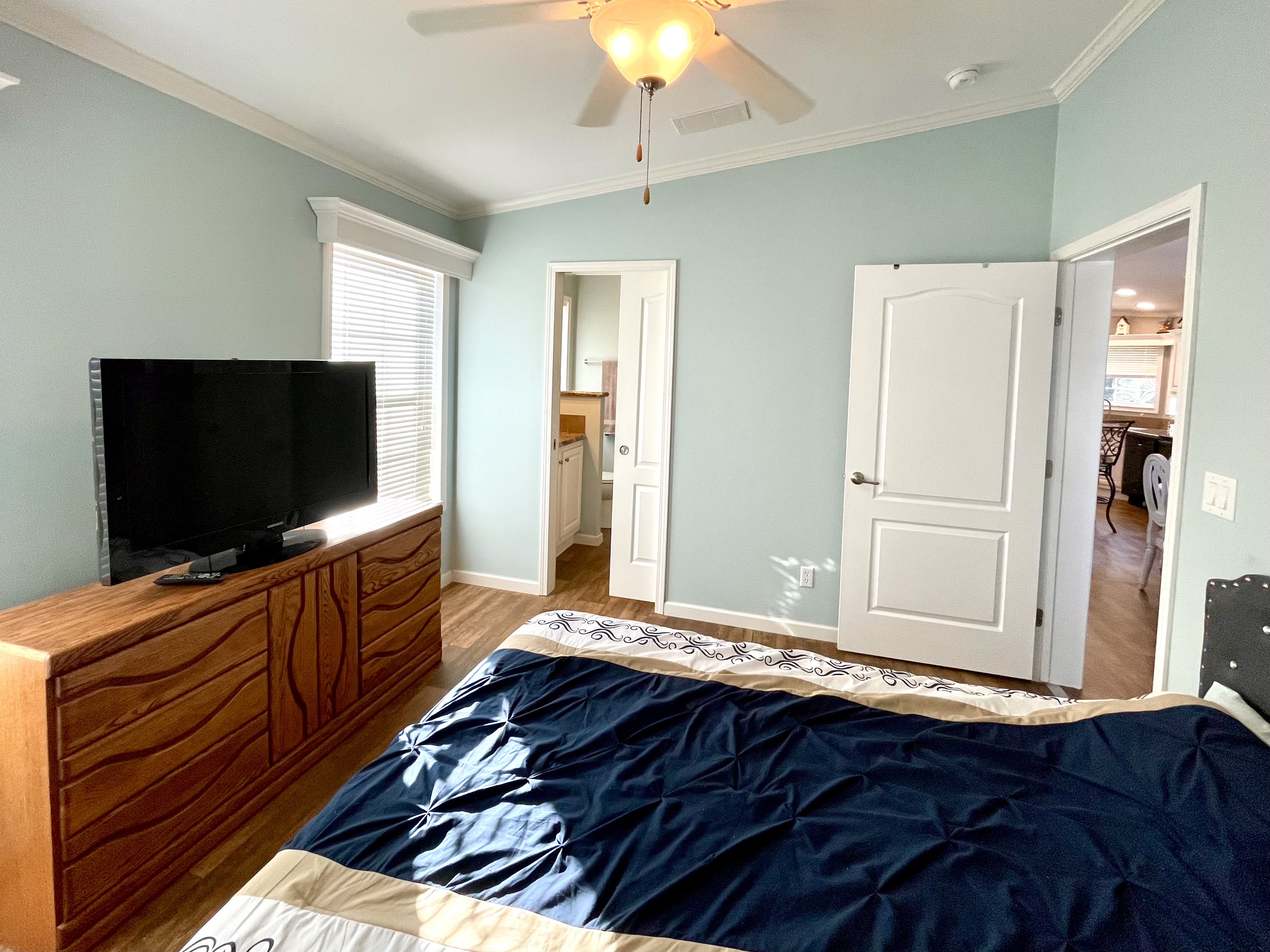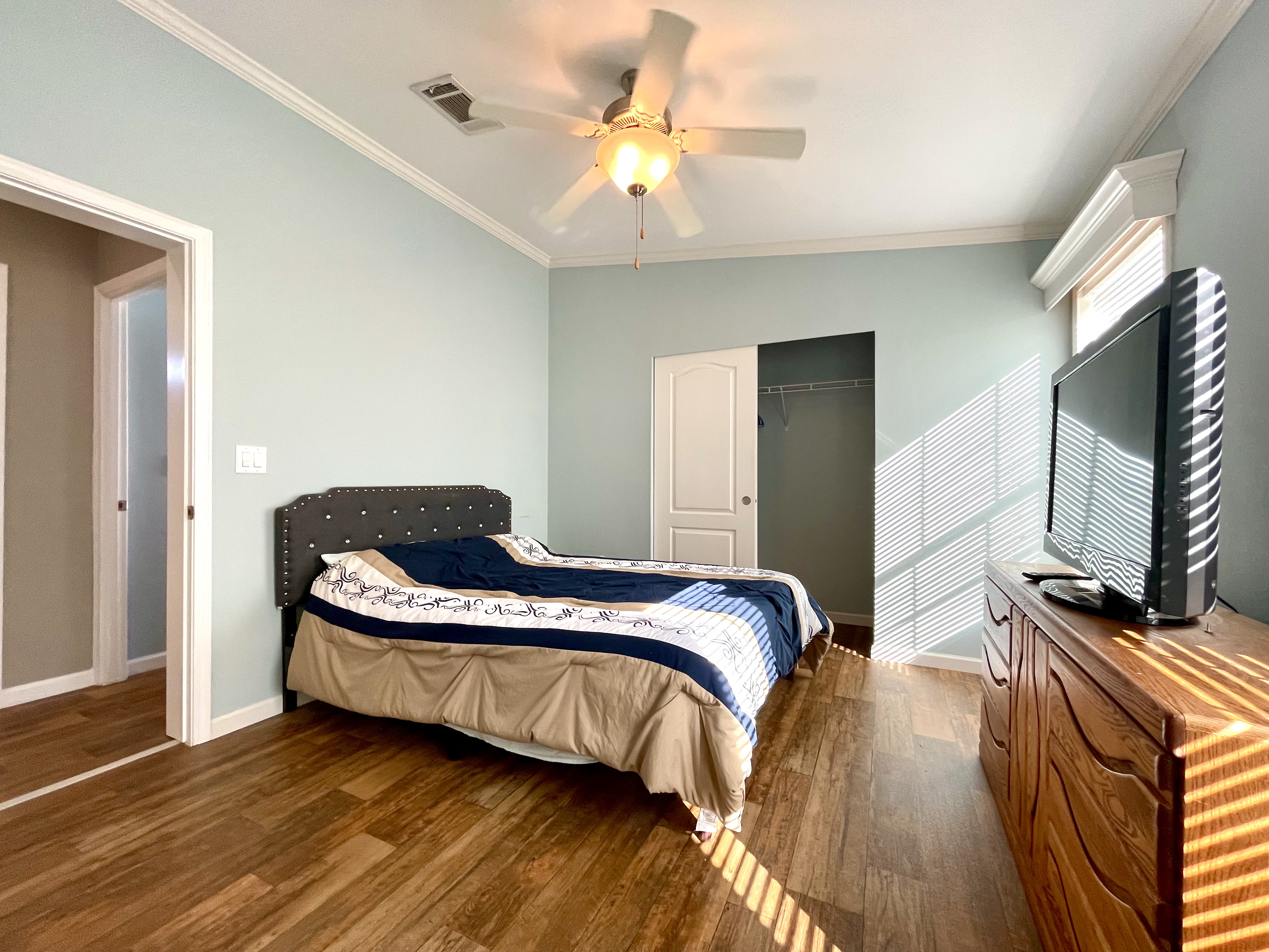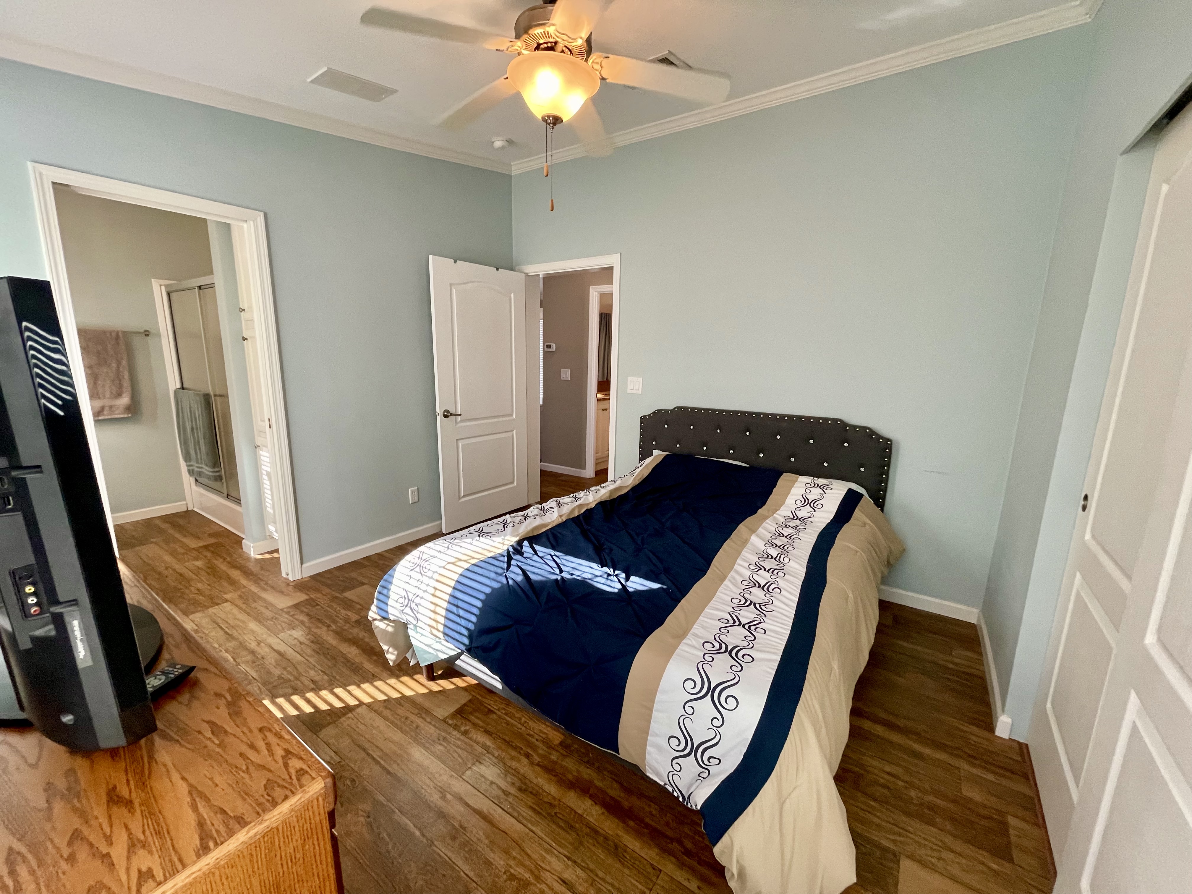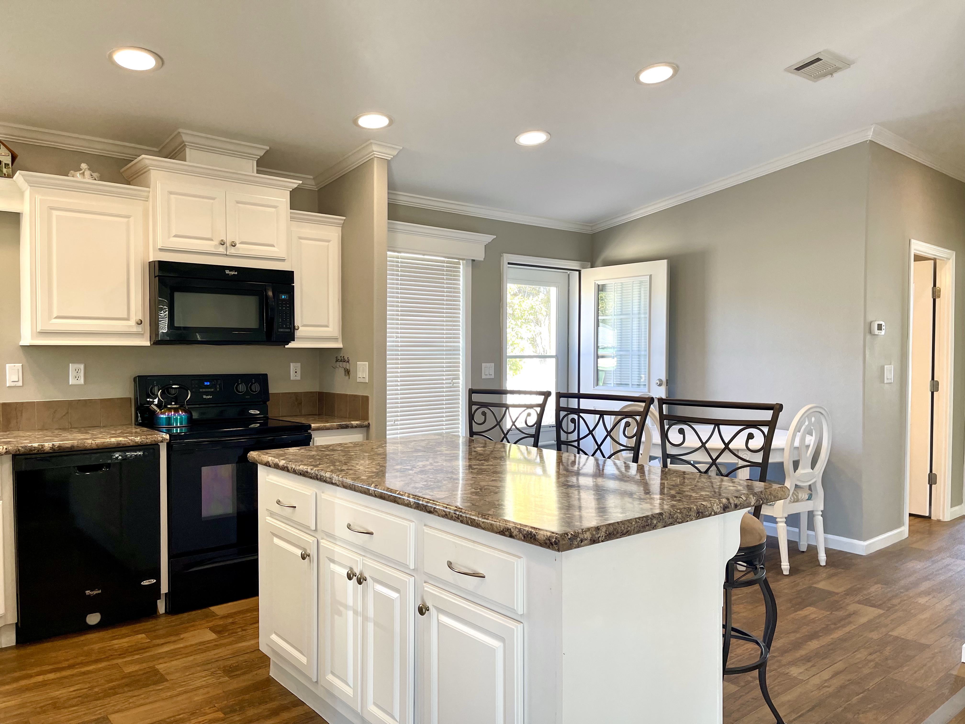 Like-New 2015 Home on Rare Double Corner Lot | Resort-Style Living Near Gulf Beaches Welcome to your private Gulf Coast retreat! This like-new 2015 2BD/2BA 1080 SqFt home is located in a highly desirable all-ages, resort-style community in Bradenton, Florida, just minutes from world-famous Gulf beaches, shopping, dining, and entertainment. Situated on a rare double corner perimeter lot, this home offers exceptional privacy, multiple-car parking, and expansive outdoor living space featuring paver patios, mature palm trees, and lush landscaping. Outdoor living shines with decking on both the front porch (Trex) and side deck, plus an extra storage shed for added convenience. Enjoy morning coffee or sunset cocktails from the screened-in front porch with Gulf Coast Sunset Sky views, complete with a roll-down privacy blind. Inside, the bright open-concept floor plan is highlighted by cathedral vaulted ceilings, luxury vinyl plank flooring throughout, and upscale finishes including sheetrock walls, crown molding, paneled doors, and custom window cornice details. The stylish kitchen boasts white cabinetry, a double-basin sink, abundant storage, and a large island with barstool seating, perfect for entertaining or everyday living. Sliding French doors seamlessly connect the indoor space to the screened porch for effortless Florida indoor-outdoor living. The split-bedroom layout provides comfort and privacy, featuring a guest bathroom with a shower/tub combo and a spacious primary suite with a step-in shower, privacy wall, and pocket door. Additional highlights include a 2024 Centra A/C Unit, Shingled Roof, extra storage shed, and low-maintenance landscaping. This pet-friendly, ALL AGE Community offers true resort-style amenities, including a clubhouse, heated pool, fitness center, pickleball courts, game room, shuffleboard, horseshoes, pavilion, picnic areas, pet walk, and doggie station. Move-in ready, private, and impeccably maintained-this home is ideal as a full-time residence, vacation getaway, or seasonal retreat. Experience the best of Florida Gulf Coast living in one of Bradenton’s most sought-after resort communities. Lot rent for this home is just $824 per month and includes trash/recycling pickup, lawn-care, and amenities! Don’t wait, call today! All listing information is deemed reliable but not guaranteed and should be independently verified through personal inspection by appropriate professionals. Integrity Mobile Home Sales cannot guarantee or warrant the accuracy of this information, measurements, or property condition. Measurements are approximate. Lot rent is subject to change.