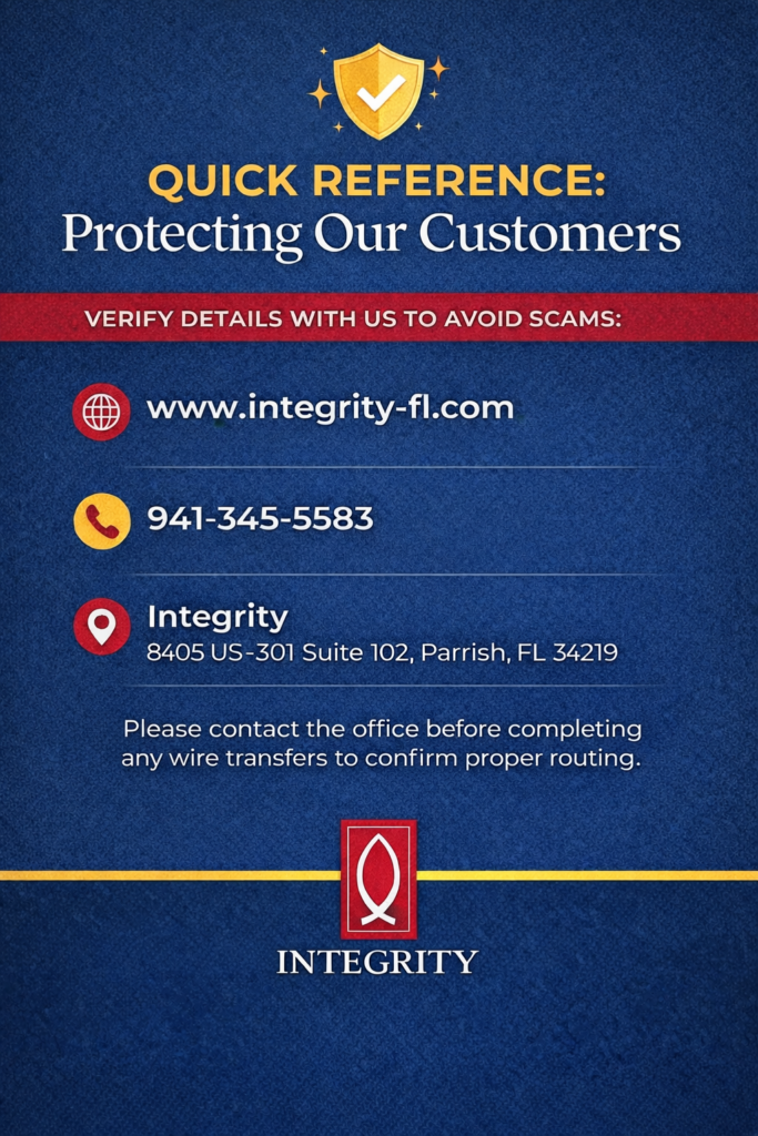 Before sending any personal or financial information, confirm you are speaking with Integrity directly.